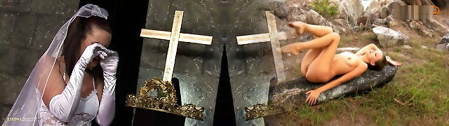 Sexy dark haired milf is a bride and she smashes in front of the church altar