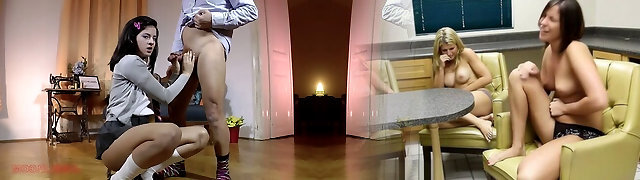 Hot Light-haired Tight Pussy Small Hands Sexy Art Student works on a Dick and Nut to Drain them by taking their Precum & Jizz