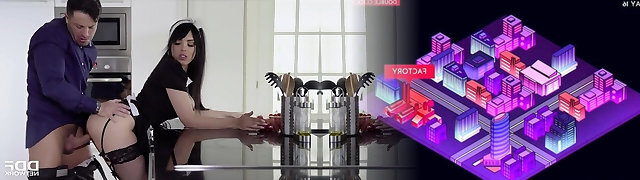Red haired Maid in fishnet tights seduced by the landlord