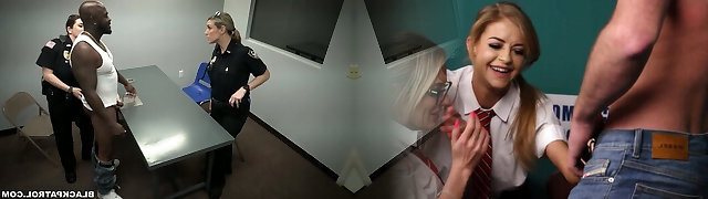 Two curvaceous and crooked white police women use black criminal for unlawful threesome