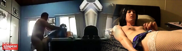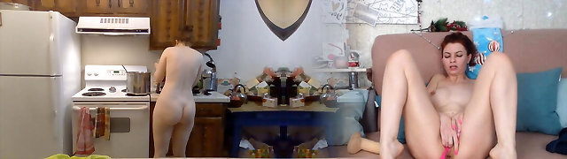 Lady shows her pussy to the spycam of the Internet technician and catches her fucking and dribbling cum .
