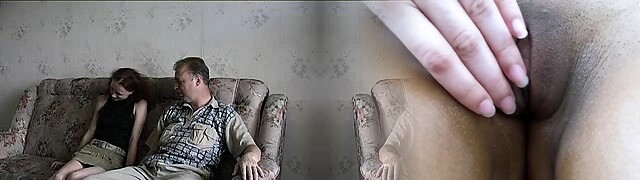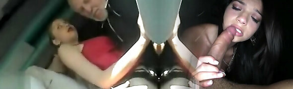Chesty girl gets fingered and groped by an old daddy