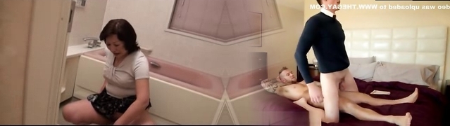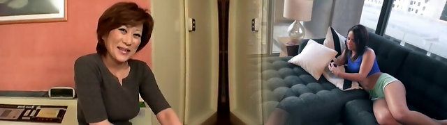 Asian Mature caught Young Boy Jerk with her Thong and help him with Blowjob