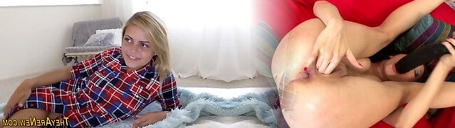Blonde nubile with a sexy face gives up her anal innocence on camera