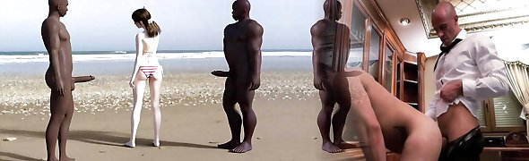 Milky Girl Gets Blacked On The Beach By 2 Bbcs