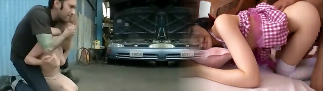 mechanic grabs blonde bitch and ties her up and fucks her hard as slave