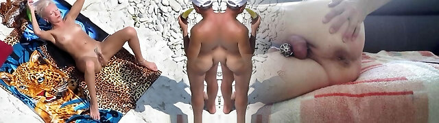 Big Dick Dude Jerks Cock Near Sunbathing Nude Beach Girl