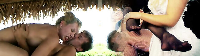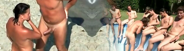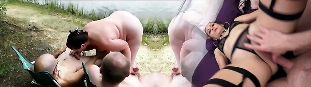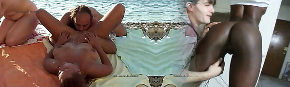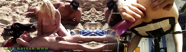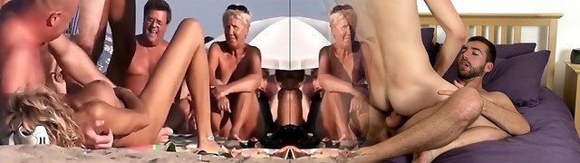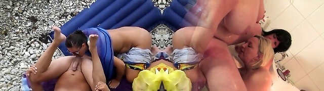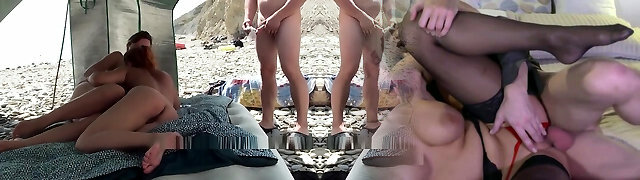 Big-chested and mature mommas and horny daddies in gang sex on the beach