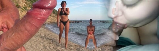 Nudist BEACH Oral Pleasure: I showcase my hard cock to a bitch that asks me for a blowjob and cum in her mouth.