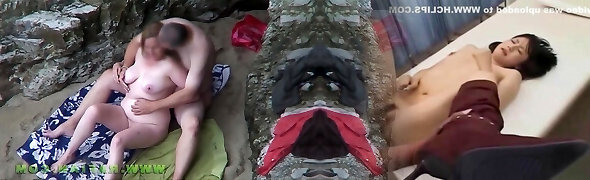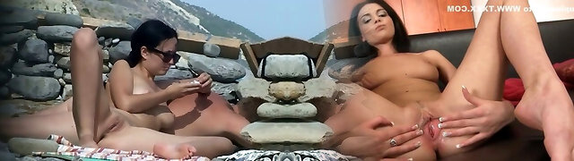 Outdoor lovemaking on a beach ends with a massive cumshot on culo