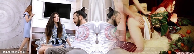 Stepdaddy And Stepson Fucked A Lovely Slut And Tore Her Poon