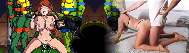 April O'neil and her friends (slow mo mass ejaculation)