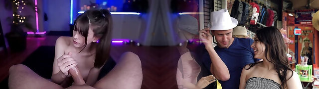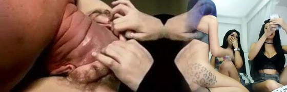 Eager cock sucking and deepthroating brunette duo