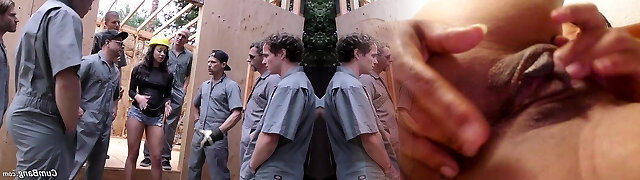 Gangbang for sexy Latina on construction site