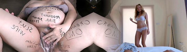 9 month knocked up cheating wife Milky Mari gets covered by body writings in dirty bukkake roleplay gangbang!