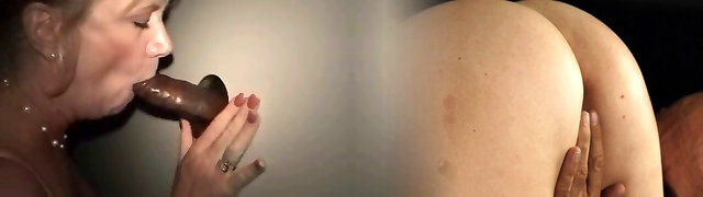 Cuck fucks Cougar in gloryhole as she sucks Black dick