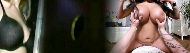 Gloryhole sex video with a bosomy amateur brunette