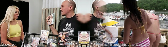 Nasty platinum-blonde damsel with juicy booty Rharri Rhound goes wild in the glory hole room