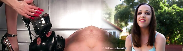 Dame in high heels licking slave perfectly in female dom shoot