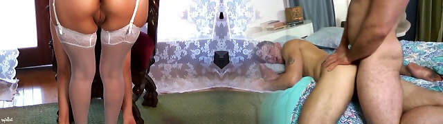 Classy amateur MILF in dress and stockings fucked by paramour