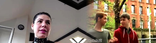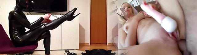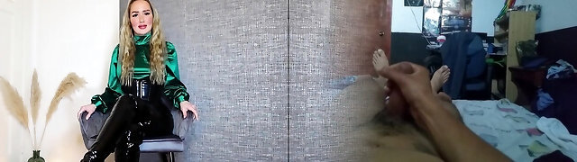 Blonde first-timer fantastic lady in turquoise latex dress will drive you nuts