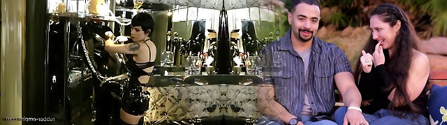 Quite leggy brunette bar girl is ready to position for you in her latex dress
