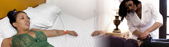 Latin lady clothed up in a handsome nurse outfit to fuck her boss.
