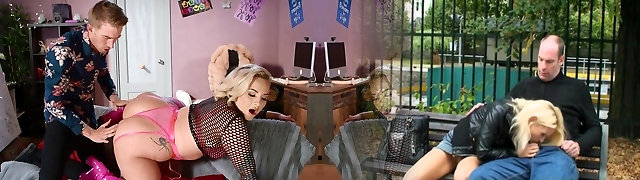 Stunning stepsister shares hotel room with horny stepbrother (Cums twice)