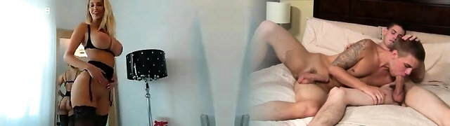 Gorgeous blonde with big knockers in her sexy lingerie