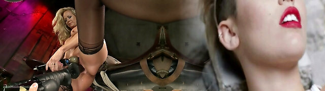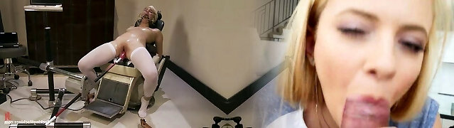 Blonde slutty stunner fucked by double fucking machine in fucktoy mastur