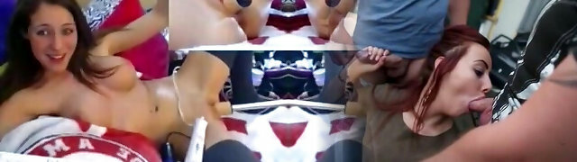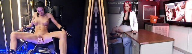 sexy redhead with perfect breasts mounts fuckfest machine