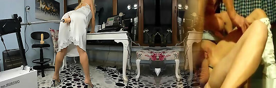 mistress melvina on fucking machine then shagged by slave