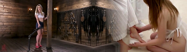 Wild Blonde Lesbians Lily Labeau and Lorelei Lee Playing with Hook-up Machines