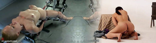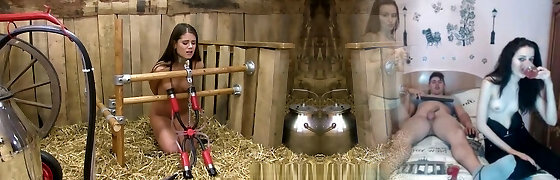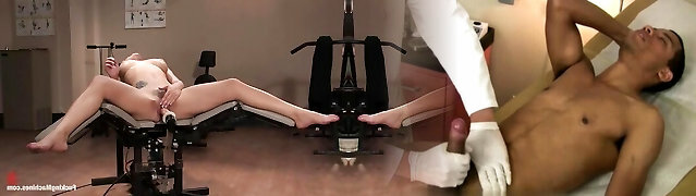 Fucking her with a sex machine and gimps go bananas