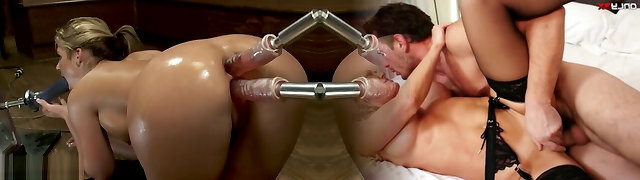 Big ass blonde anal and pussy fucking dildo machine