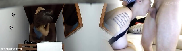 Spy camera in a massage cabinet records hot fuck-a-thon scene