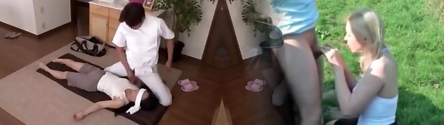 Rion King, Chanel Preston And Nadya Nabakova In Jumpy Couple End Up Dual Teaming Busty Masseuse