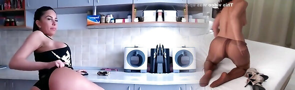 Stepmothher masturbates on a stool and ends up dumping right on the floor!