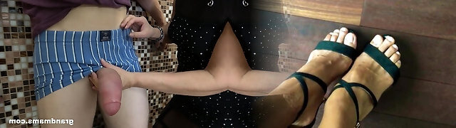 Wrinkled mature blonde bitch is into jerking and fellating stiff boner cock