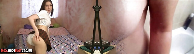 pequeñ_a colegiala follando boca abajo con su uniforme de la escuela y sus undies