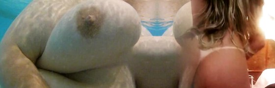 2 hot lesbians in the pool loving eachother