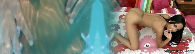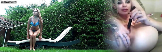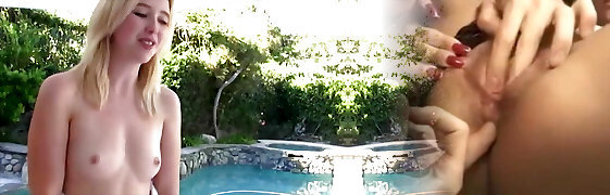 Tiny Tabby Jerking her pussy using dildo at the pool