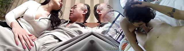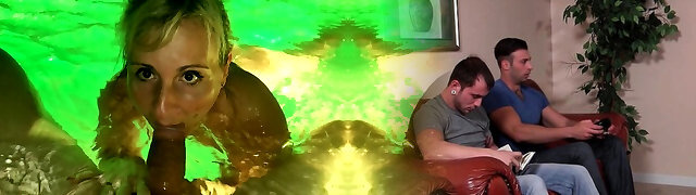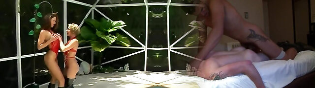Dual blowjob by Sasha Rose and Alessandra Jane lead to Trio-way