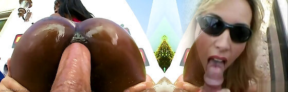 Black stud drills black anus of slutty dark-hued chick Sarah Banks