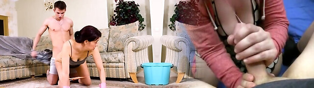 Exciting maid with shaved beaver agrees for fuck-a-thon with new BF