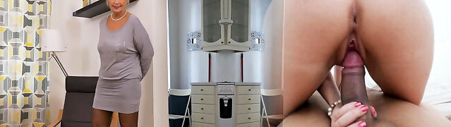 Flamboyant blonde doctor cures her patient by riding his gigantic penis