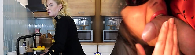 Randy blonde milf with yam-sized tits got fucked from the back while in the kitchen