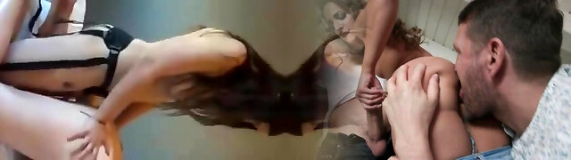 Femdom CFNM sandy-haired MILF in lingerie strapon bangs subs ass