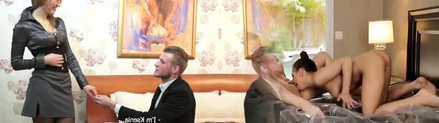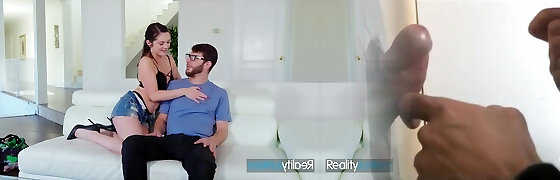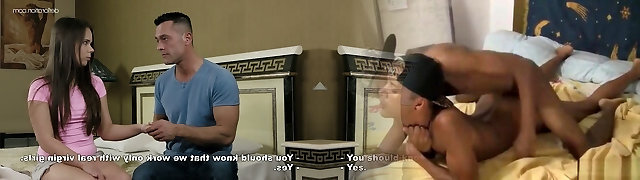 Wifey allows her husband to unclothe and fuck pretty teen with pigtails
