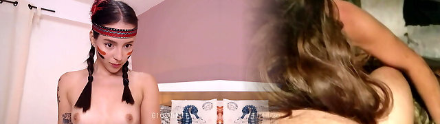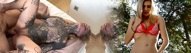 Tattooed girl thinks that she has no time to waste and starts seducing her humungous bf